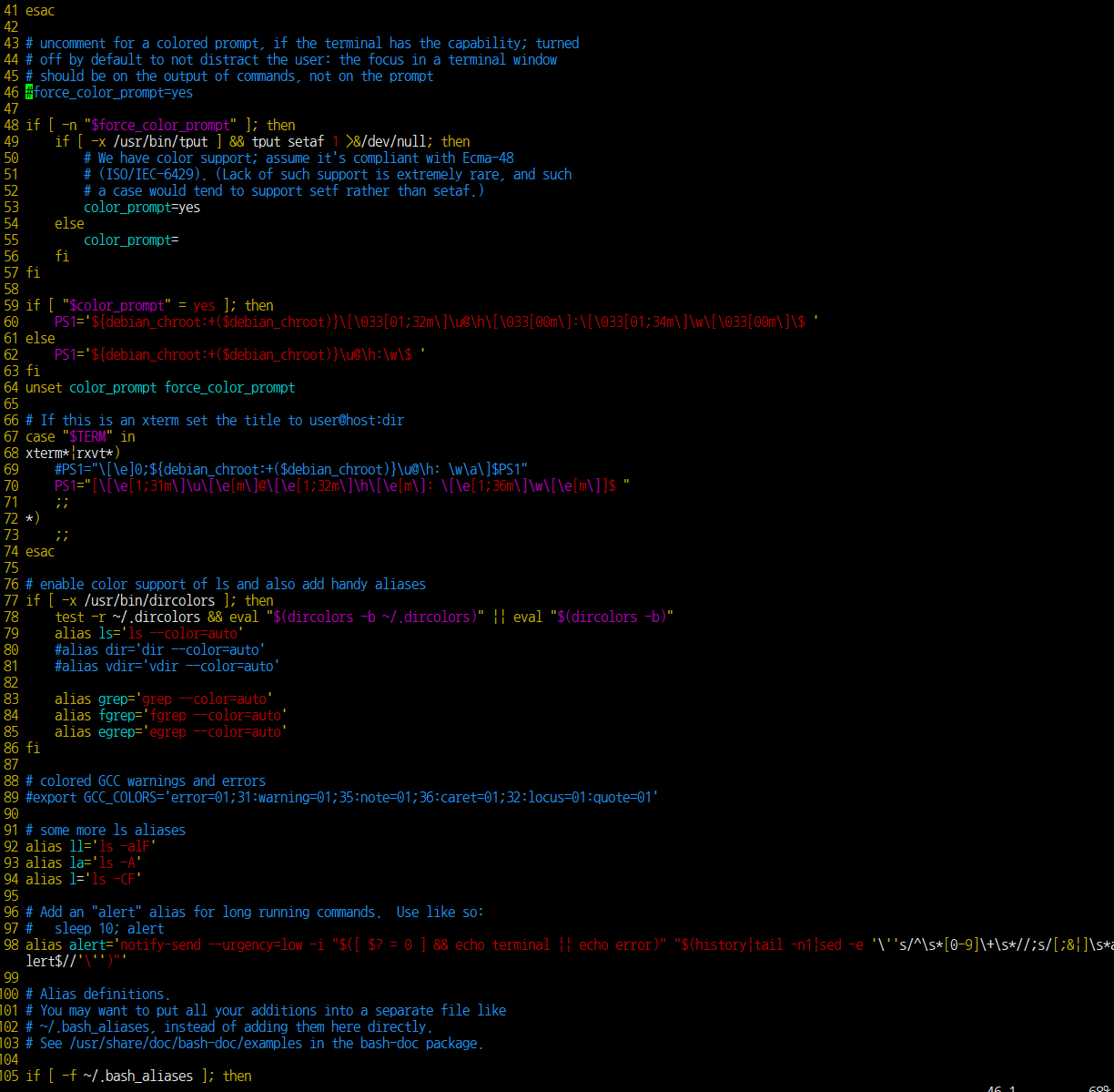 $ vim ~/.bashrc 의 line 70 은 사용자의 prompt를 변경할 수 있다.