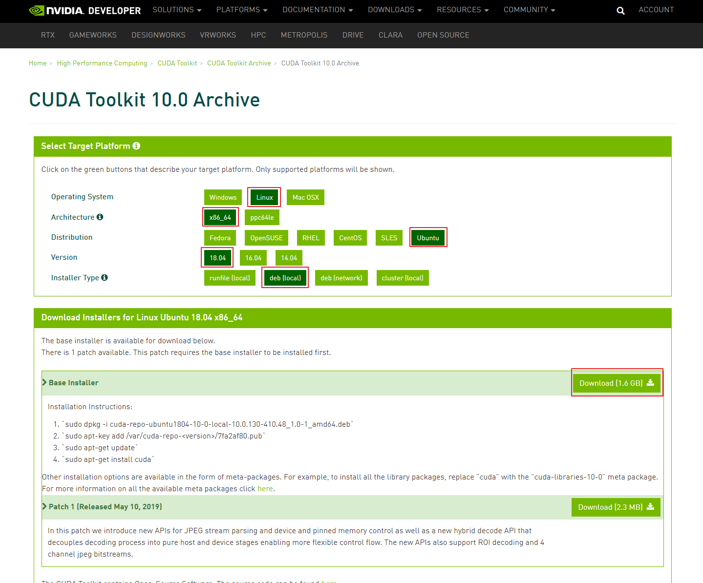 https://developer.nvidia.com/cuda-toolkit-archive 에서 원하는 버전의 CUDA Toolkit을 설치한다.