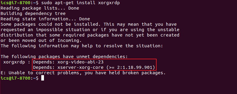 xorgxrdp 패키지를 설치할 때 의존성이 발생한다.