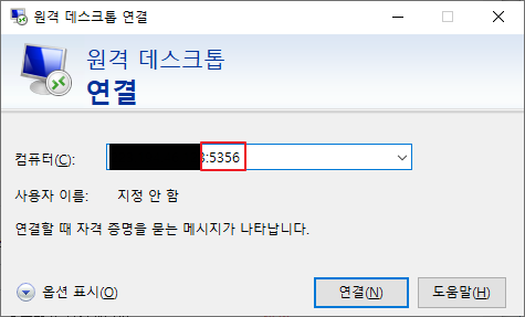 필자는 포트포워딩을 사용했기 때문에 port 5356을 지정했다.