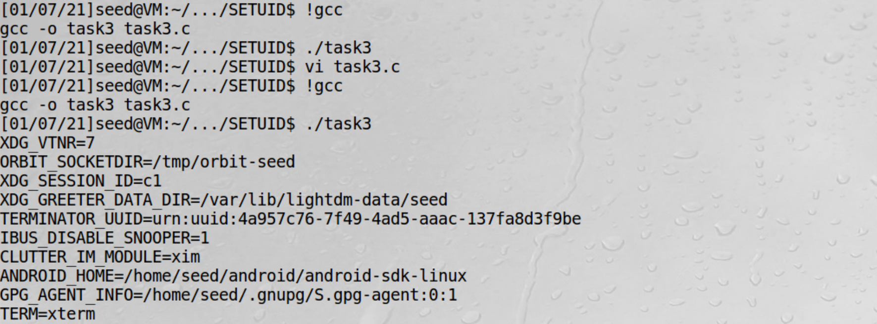 [01/11/21]seed@VM:~/.../SETUID$ gcc -o task8 task8.c