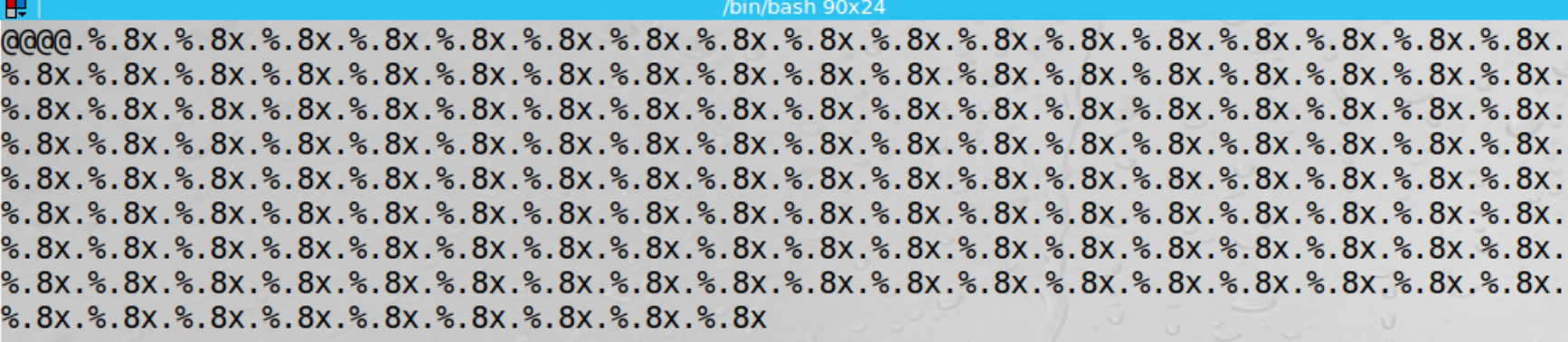 '@' 문자는 아스키 코드로 0x40이고, buf 변수의 가장 처음 4byte를 차지하고 있다. 따라서 %.8x format specifier로 여러번 stack 영역을 조사했을 때 총 79개의 %.8x가 필요한것을 확인하였다.