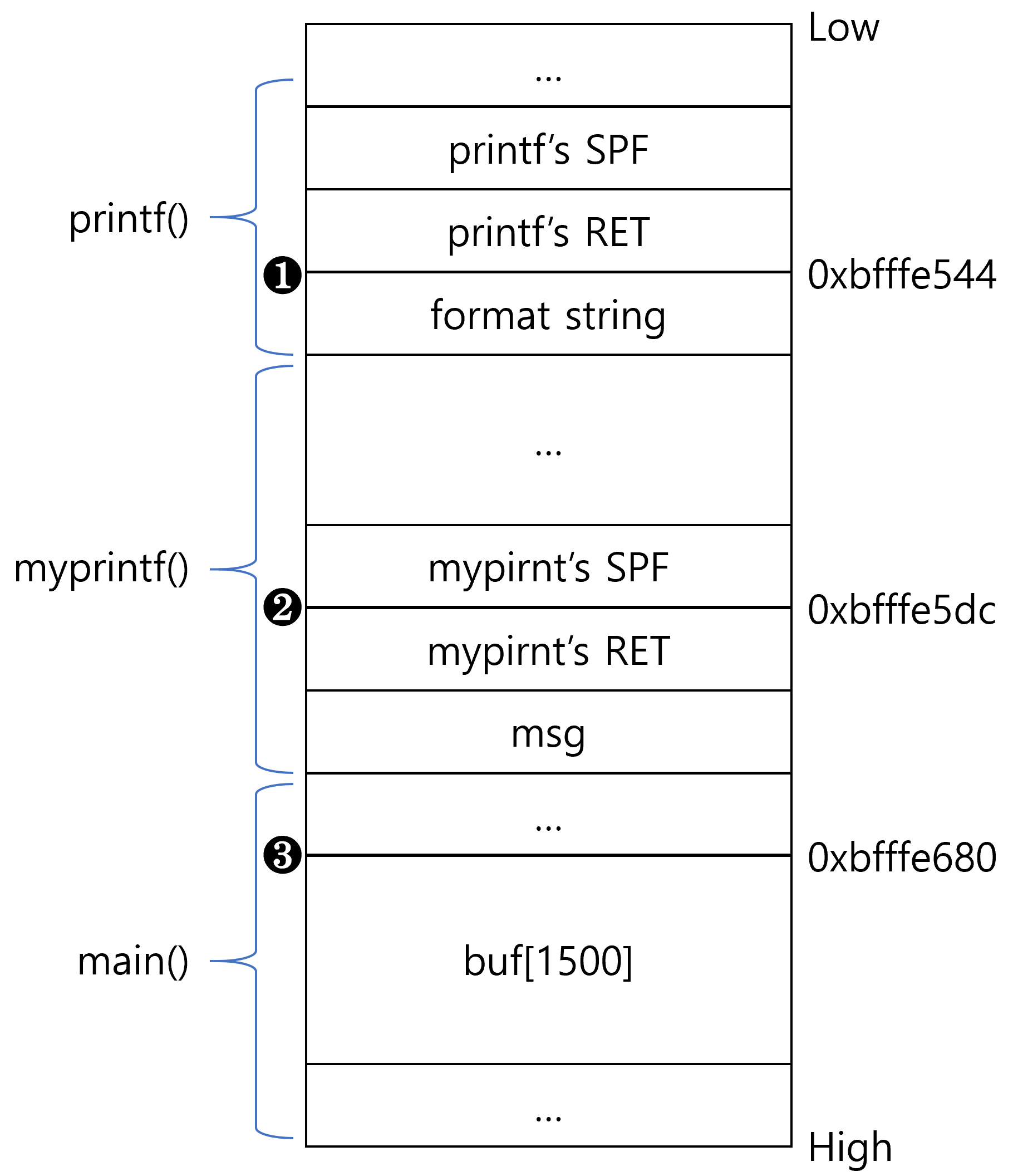 The ebp value inside myprintf() is: 0xbfffe5d8