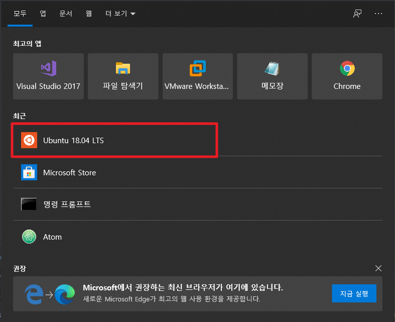 이후 Windows 검색창에 설치한 OS의 이름을 검색하여 Ubuntu CLI를 실행할 수 있다. [그림 5] 참고