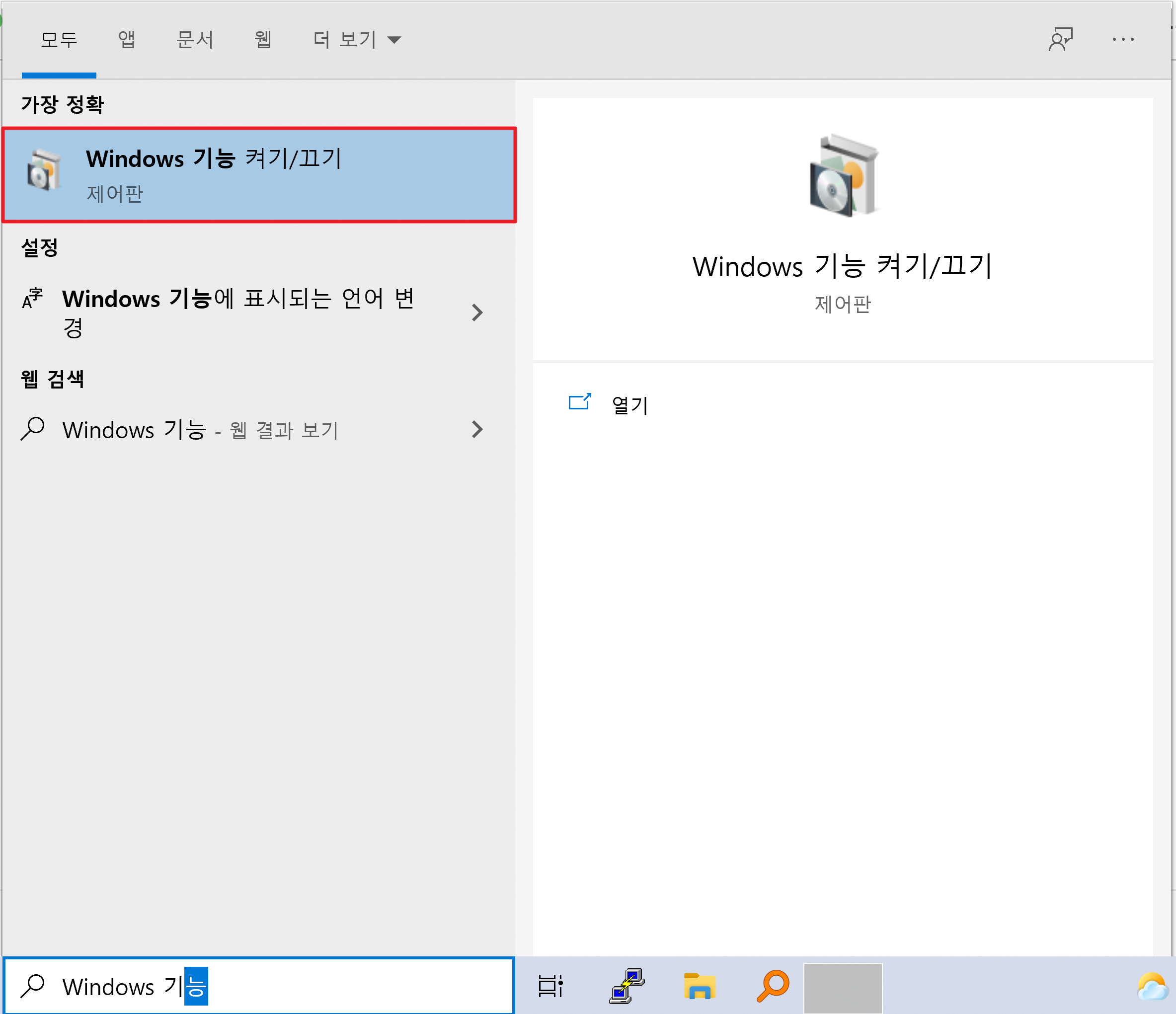 일반적으로 WSL 기능은 Windows 10 환경에서 disabled 되어 있다. 따라서 사용자가 직접 enabled 해주어야 한다.