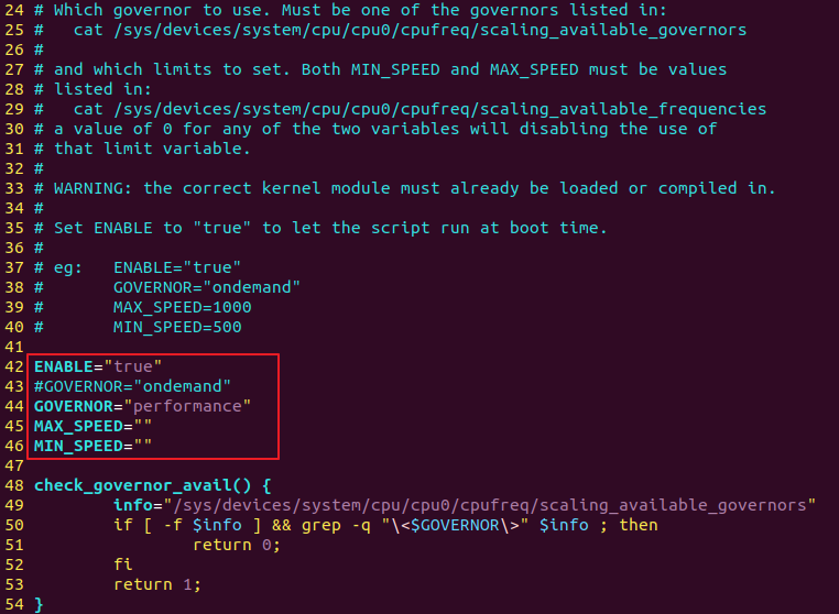 $ sudo vi /etc/init.d/cpufrequilts